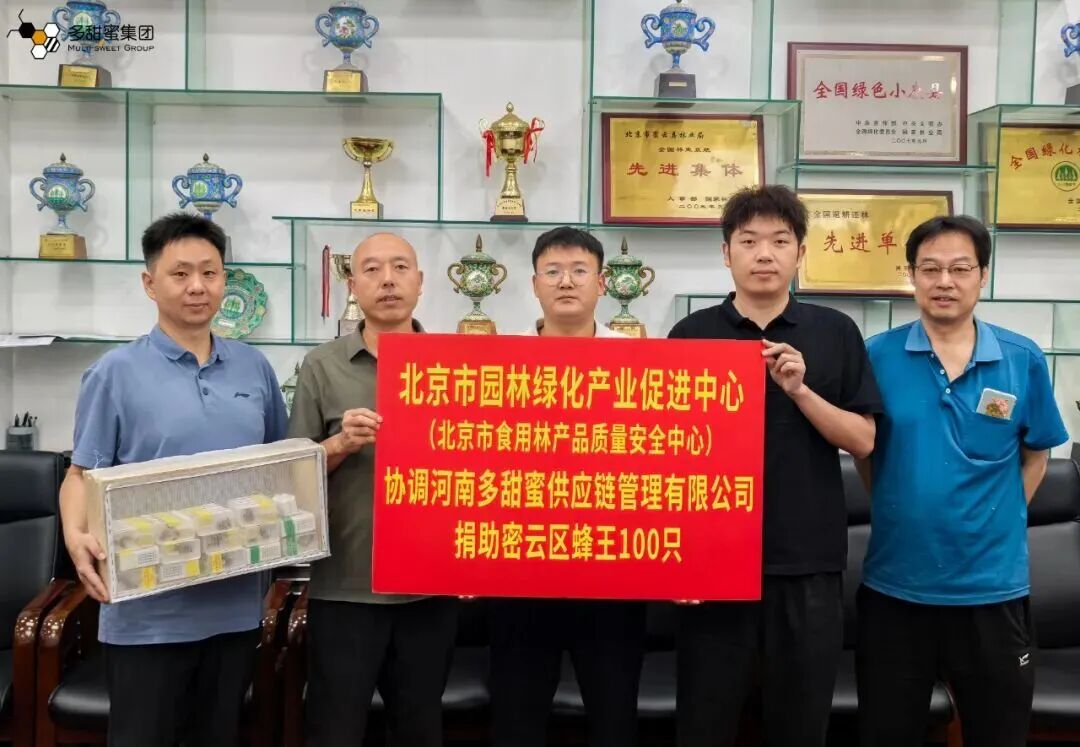 8月,北京密云区因水库泄洪导致蜂农受损。多甜蜜集团董事长孟少伟高度关切,第一时间联系北京园林绿化局产业促进中心,并紧急决定无偿捐赠100只优质蜂王,以支持受灾蜂农恢复生产。为确保援助及时,集团抽调人员组成运送小组,风雨兼程驱车千里,于8月8日将这批蜂王火速运抵密云灾区。集团还计划根据复产需求提供后续援助,助力蜂农彻底走出困境。此次千里驰援,体现了企业心系蜂农、回馈行业的责任与担当。