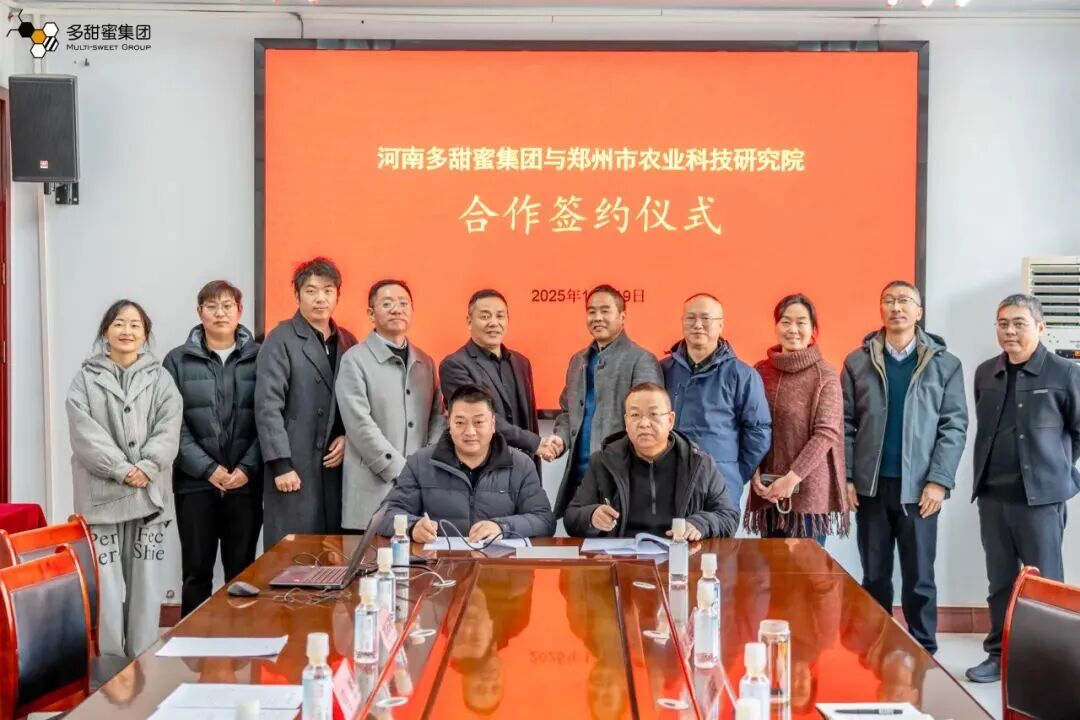 2025年12月19日,多甜蜜集团与郑州市农业科技研究院正式签署协议,共建标准化蜜蜂繁育与授粉示范基地。此次合作旨在发挥院企双方优势,协同创新。未来,示范基地将重点聚焦三大方向:一是选育适应中原地区气候的优质种蜂;二是重点发展面向草莓、西瓜等作物的专业化蜜蜂授粉业务;三是深化产学研融合,开展蜂业科普。双方希望通过科技转化破解产业痛点,共同为蜂业升级与农业绿色发展注入新动能。